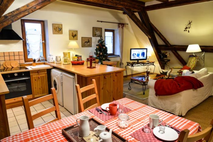 L’appartement est situé au 3ème étage d’un immeuble dans le centre historique de Riquewihr.Ce gite mélange charme historique et modernité avec tout le confort.En plein cœur de l’Alsace, proche de Colmar, sa situation idéale vous permettra de rayonner dans tout le vignoble alsacien.